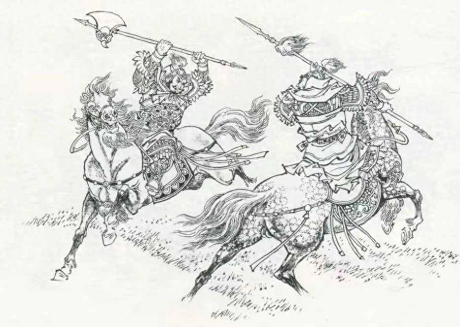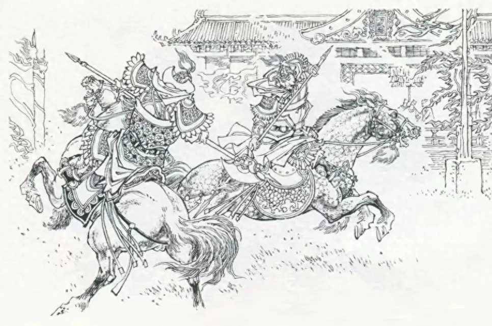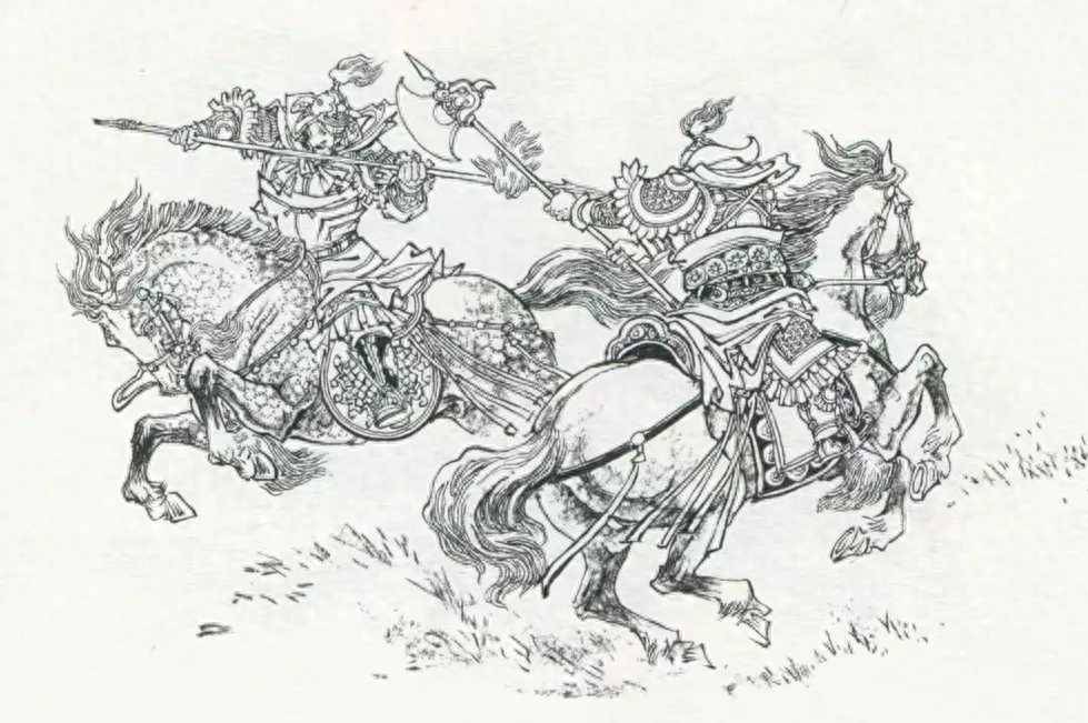 兩軍陣前,"霹靂火"秦明與"急先鋒"索超二人話不投機,便展開廝殺。