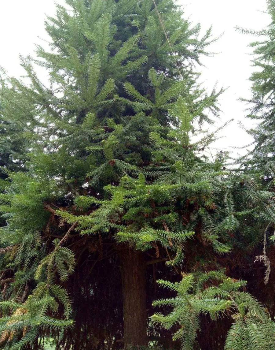 今天我們來分享農村常見的高大喬木,它的學名叫做杉樹,杉樹的葉子非常的特別,它的葉子呈針形,尖尖的。如果刺到人的身上,那必然會見紅,會很痛的。因此,在農村,小孩子們不聽話的時候,大人們常常用杉樹的枝條來嚇打小孩子。小孩子看到這種尖尖的杉樹刺就怕了,不敢哭了,老實多了。