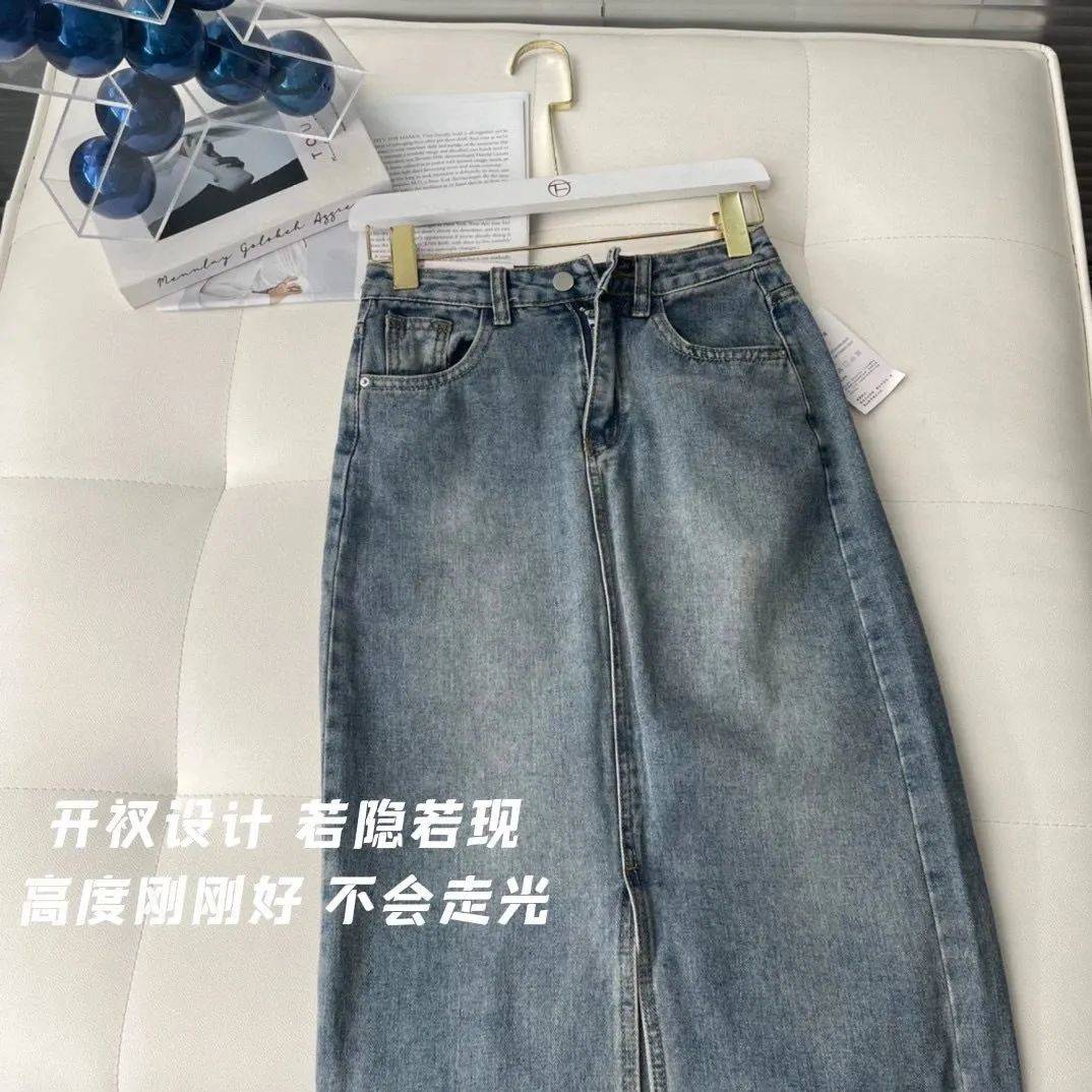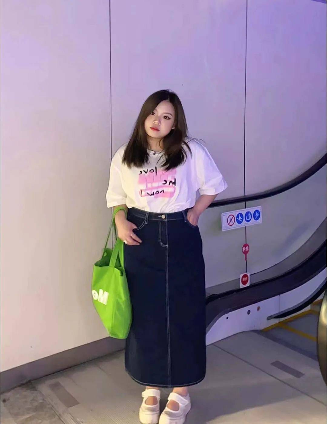 這條牛仔開叉半身裙,肉肉女孩也能放心沖!遮肉顯瘦度絕了!