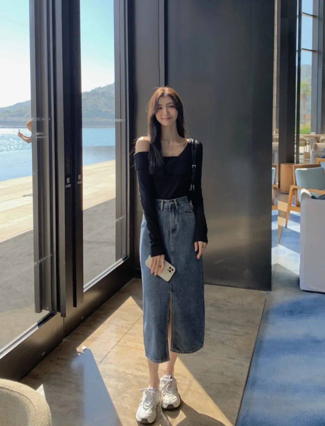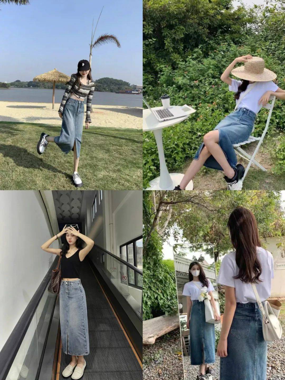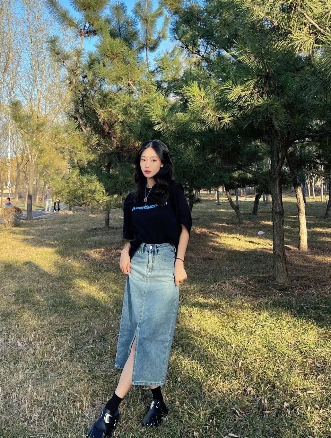 窄版的牛仔長裙,雖然顯身材,但走起路來就像是給雙腿是上了鎖,步子都邁不開,只能拍照兩分鐘