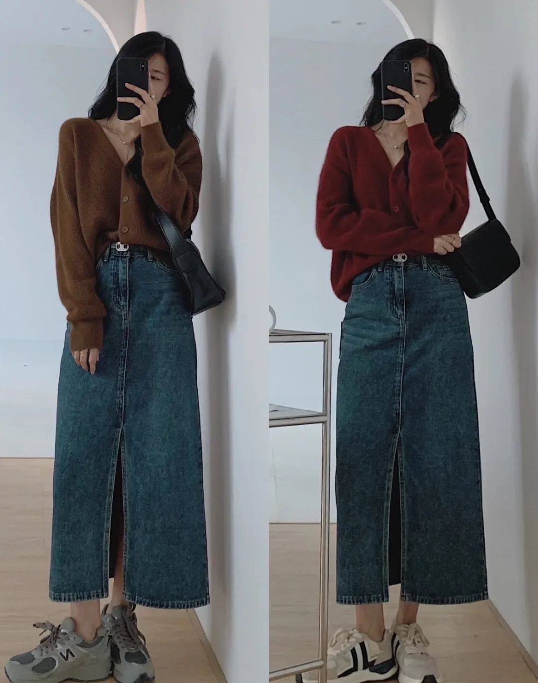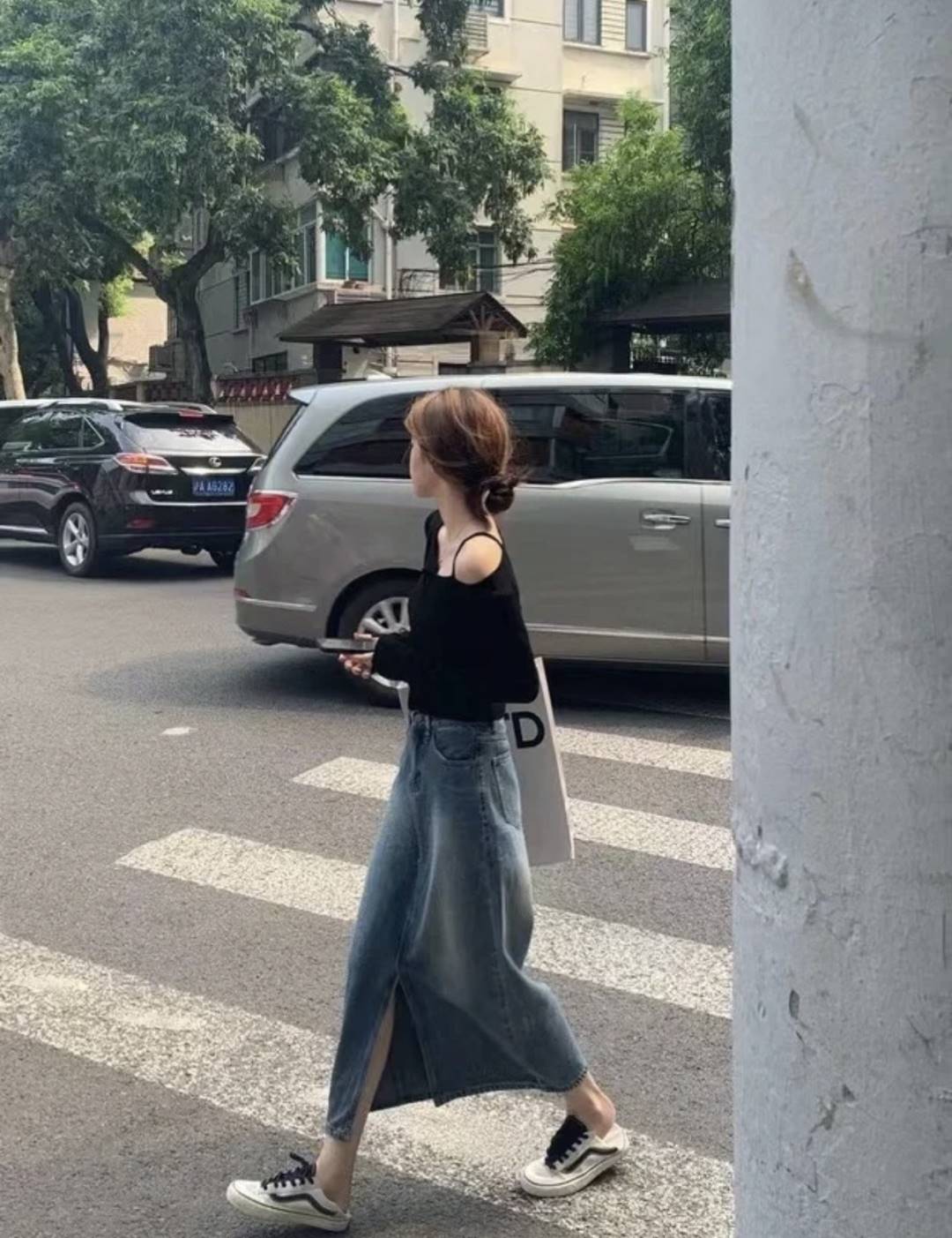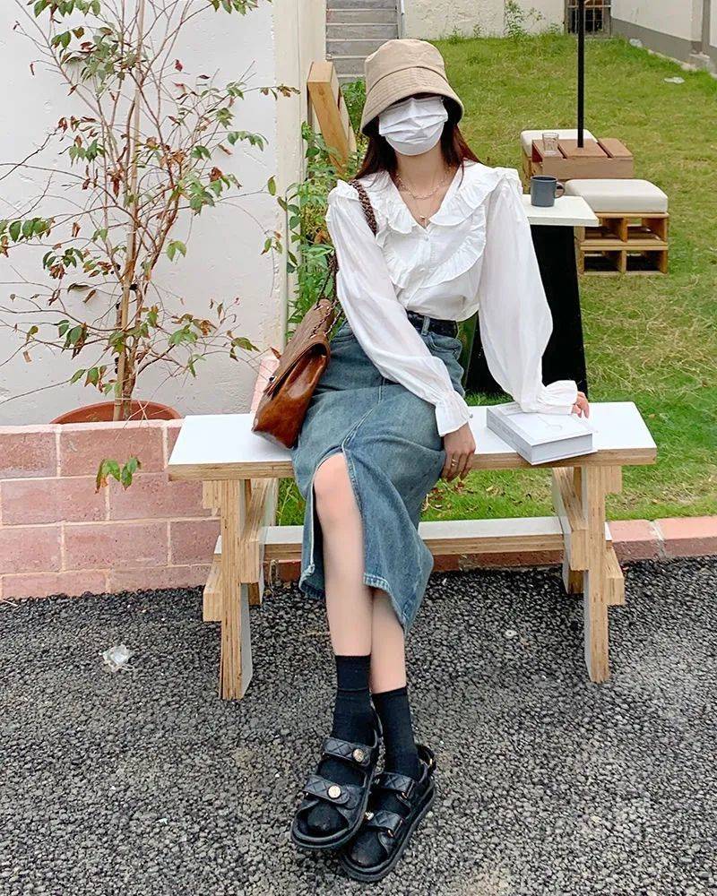 窄版的牛仔長裙,雖然顯身材,但走起路來就像是給雙腿是上了鎖,步子都邁不開,只能拍照兩分鐘