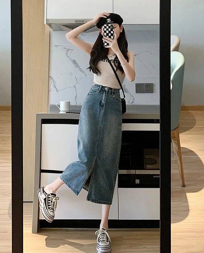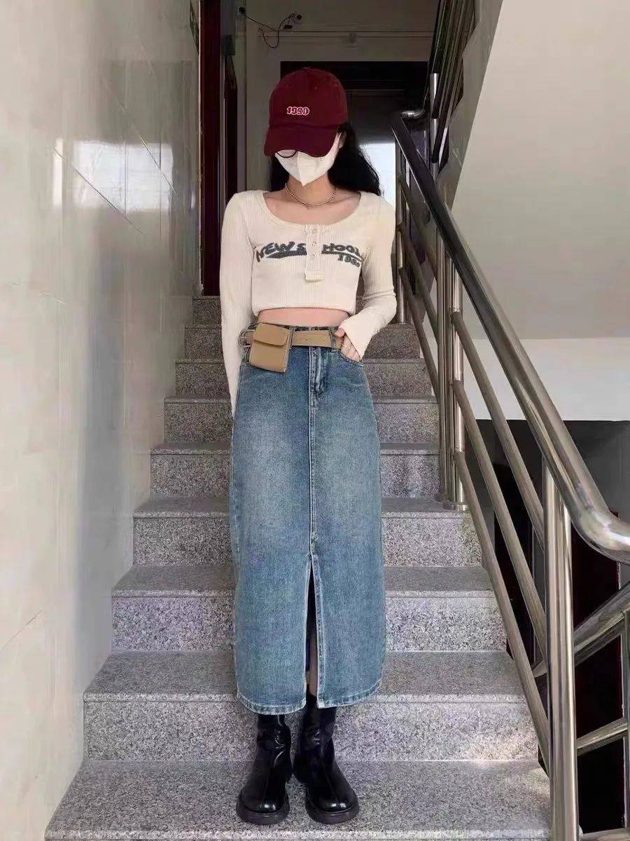 1、牛仔開叉半身裙