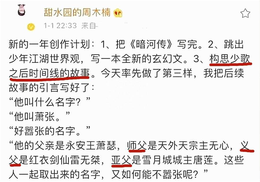 由此可見這《少年歌行》第二季早已經啟動了,而且原著作者目前也正在寫這第二季的劇本,不過令人沒想到的是他微博發文之后慘遭催更,觀眾們紛紛讓他只看一遍《花轎喜事》就好了,邊看邊寫少年歌行二。當然除《少年歌行》第二季的劇本之外,《暗河傳》這部作品也被觀眾們催更了,可以說觀眾們還是非常期待這兩部作品的。