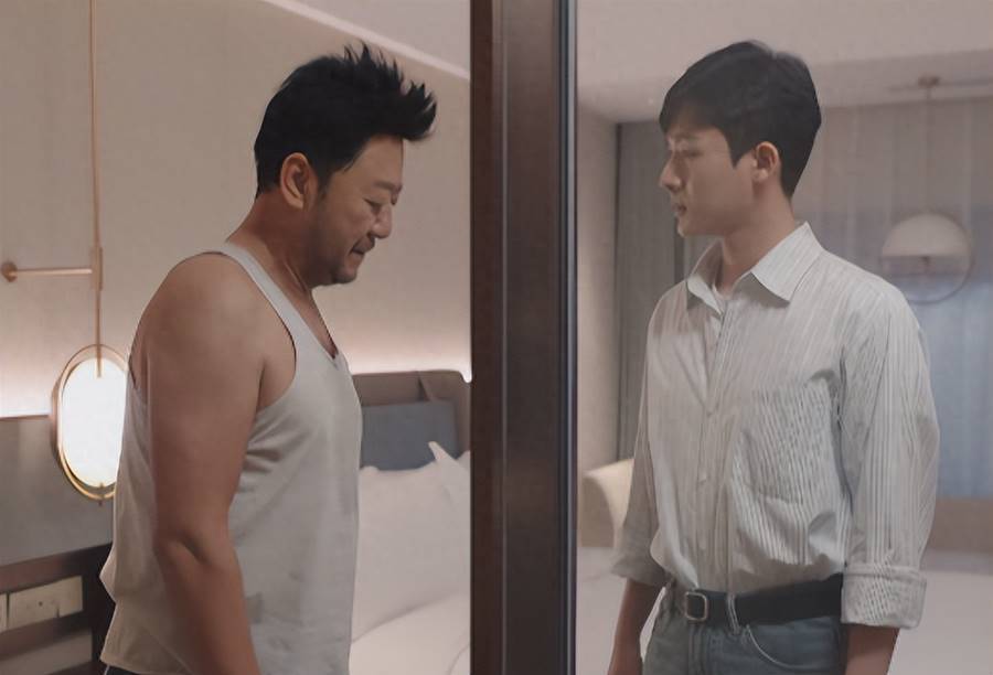 鏡頭一轉,剛才穿著厚實的中山裝的顧長山換上背心秋褲,還被熱出一身汗,不停地用手扇著風,被興杰拉去洗澡,顧長山將興杰推出浴室,帶著幾分嚴肅站在興杰對面。