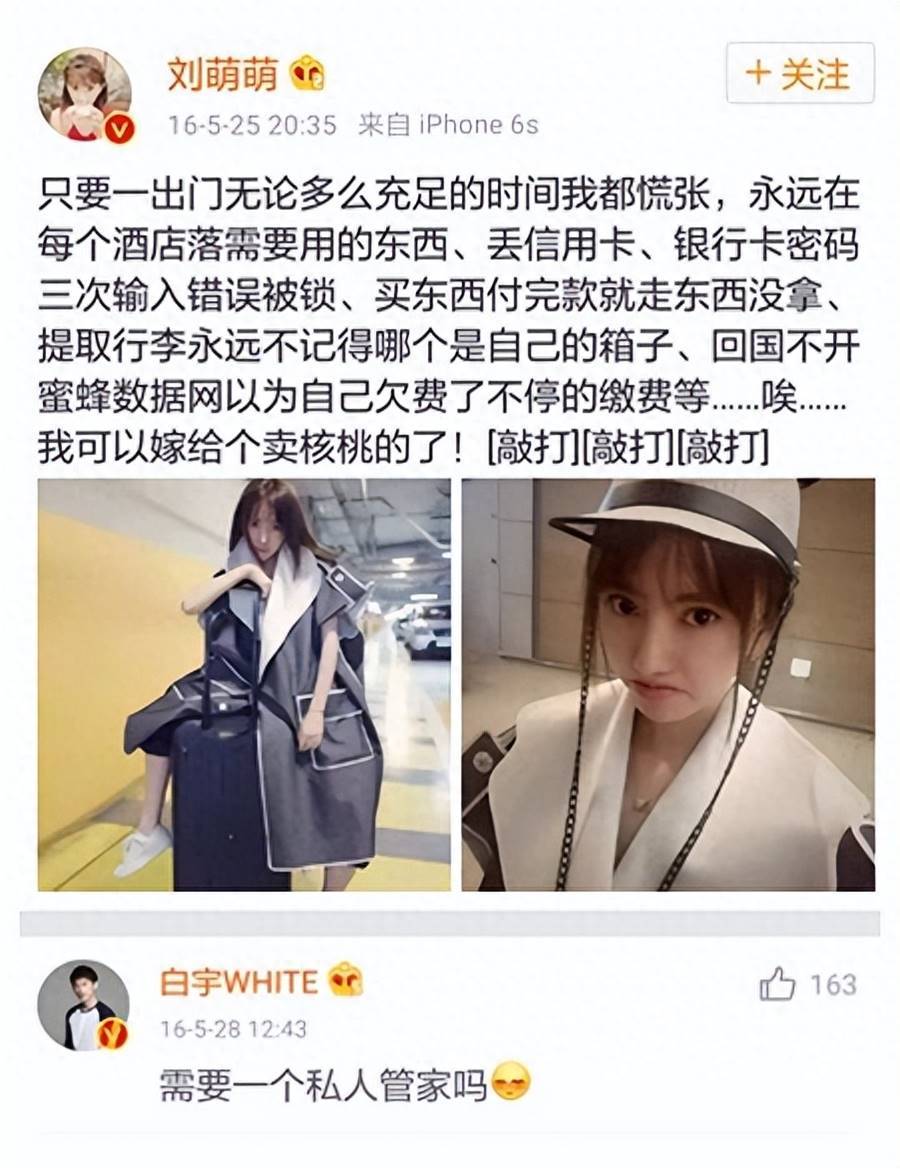 在白宇新劇上映時,劉萌萌就為他公開應援。