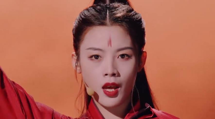 用「颯」來形容她最適合不過,紅衣舞劍,動作干凈利落,同時絲毫不影響唱歌時的氣息,戲腔一出,頓時讓人熱血沸騰。