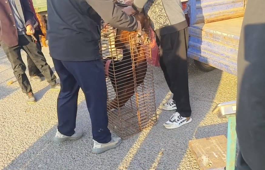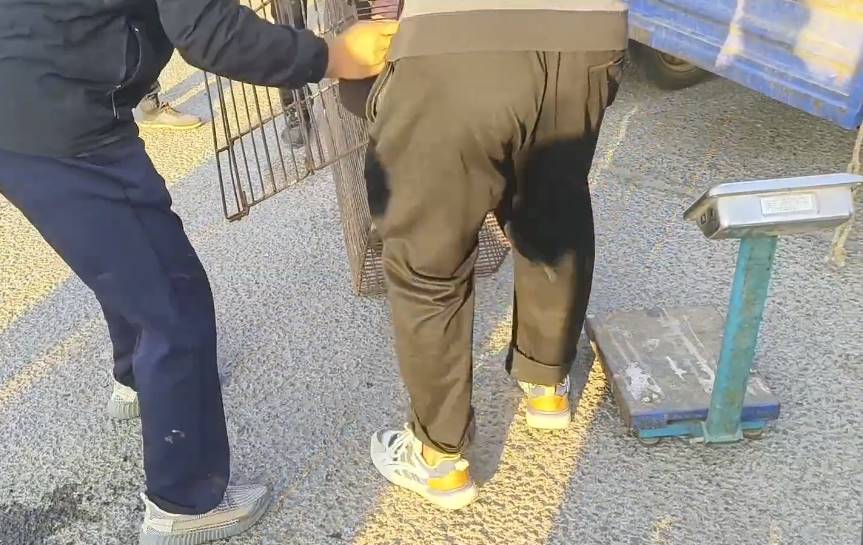于是,隨后網友順著馬路,一路來到了這輛狗肉車附近。等網友靠近之后,就看到一只極為瘦小的看家犬正被一個中年男子牽著,準備將它裝進狗販子早已準備好的狗肉籠里。不過,不知是因為之前狗主覺得狗販子賣得太過于便宜,還是狗主覺得這條狗稱重時太輕了。因此,在狗狗進了狗肉籠之后,狗販子還對著狗主調侃道:「你但凡一天給它喂一盆麩子,它也不至于這麼瘦!」