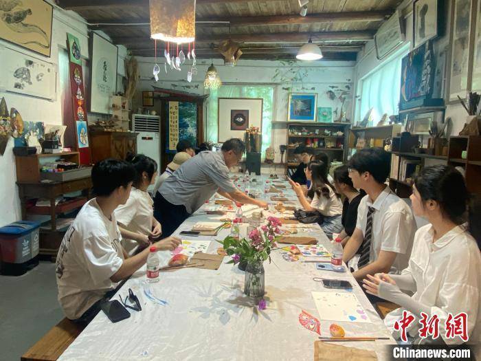 台灣大學生體驗蟹殼畫。溫嶺台辦供圖