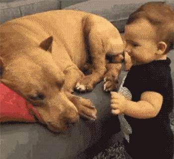 其實狗狗就像小孩子,喜歡對主人撒嬌,而狗狗撒嬌的時候,就想跟主人有肢體接觸。如果你家狗狗輕輕地用鼻子碰你的鼻子,還會發出呢喃的嗚嗚聲,這是多麼親密、多麼浪漫的互動啊,這樣可愛嬌憨的狗狗,你能拒絕得了嗎?
