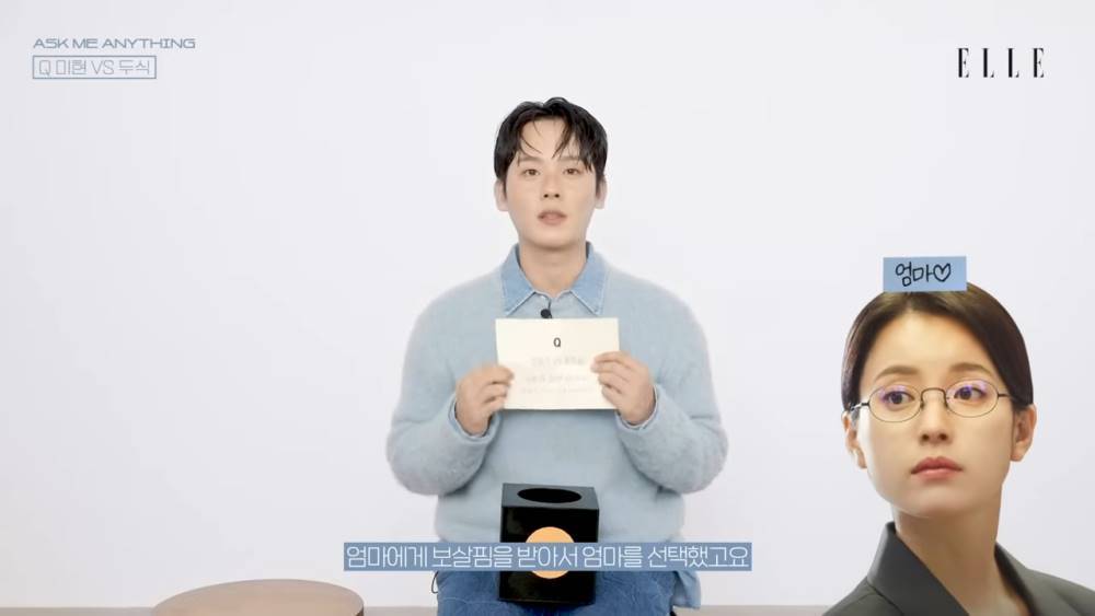 抽到「選擇爸爸還是媽媽」的死亡問題時,李正河先是懵了一下,然後立馬將提問卡塞回箱子XD終究還是逃不過的他在「美賢v.