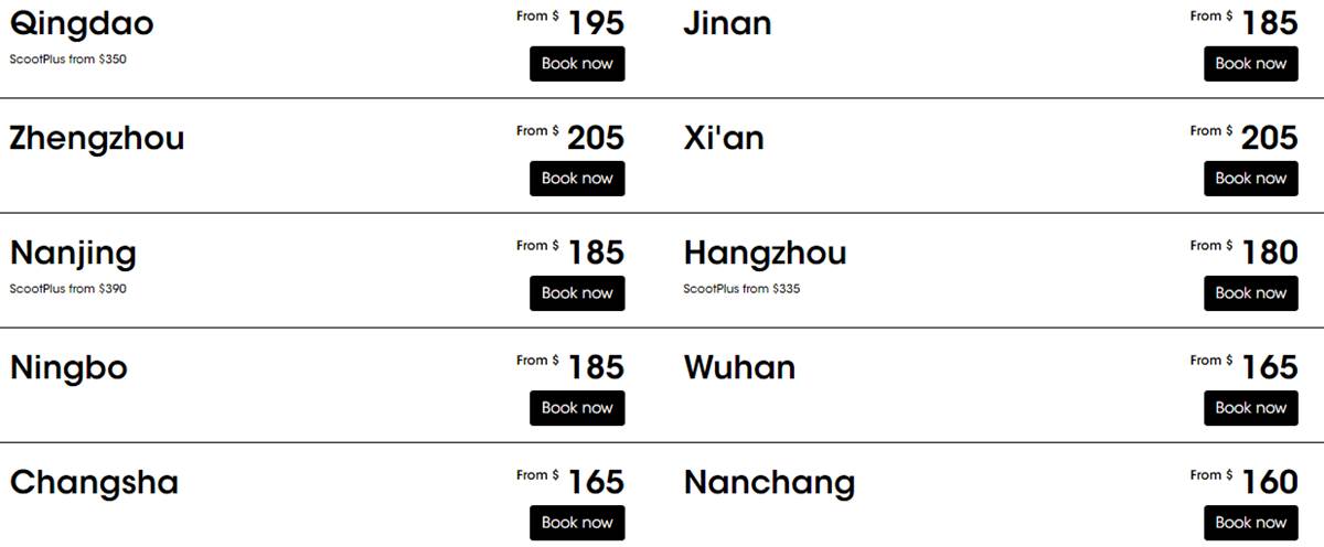 目的地包括:香港、上海、北京、首爾、日本、大阪、