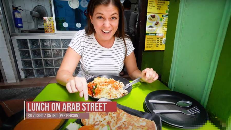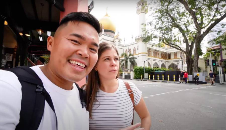 在探索這片區域的時候,他們參觀了標志性的蘇丹清真寺等建筑。然后他們前往被Mico形容為「時尚購物街」的哈芝巷,逛逛那里的商店。他們在一家名為Selfie Coffee的咖啡店停下來,顧客可以在那里自拍,咖啡的泡沫上會顯現出他們的照片。