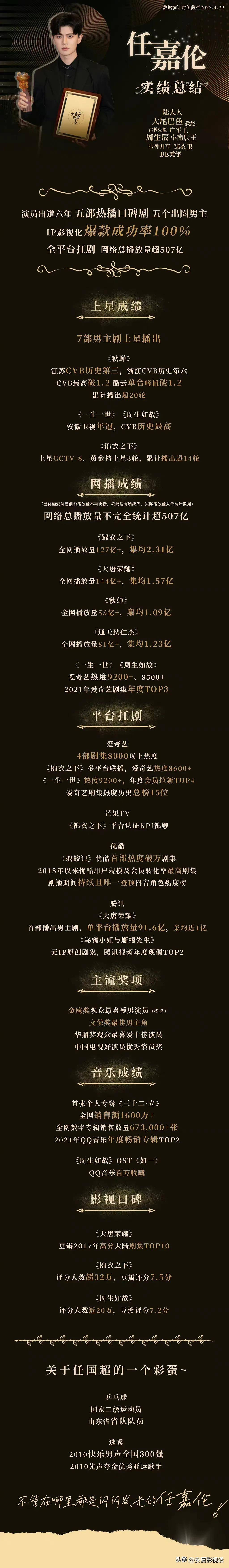 任嘉倫的第一部一番男主劇《錦衣之下》2020年播出,細細算來3年時間卻成績不俗。任嘉倫的每一部劇播出,成績都非常好,評價也是很高,而且也爆火了幾部劇,任嘉倫真的很努力的對待工作!