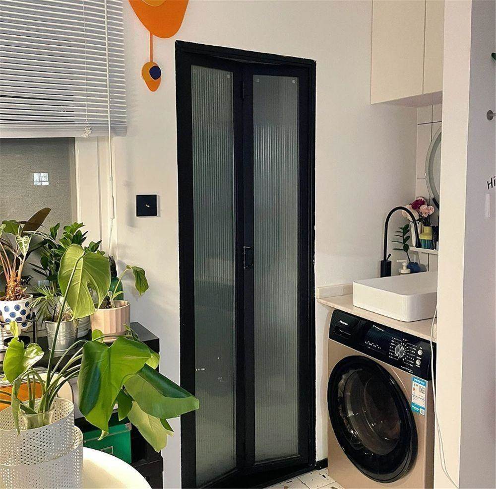 廚房與客廳之間安裝了玻璃推拉門,這不僅能夠隔絕油煙、保持室內空氣清新,還可以讓主人在做飯的同時與客廳保持視線聯系,增加了空間的通透感和交流感。同時,推拉門的設計也節省了空間,讓小小的廚房顯得更加寬敞。
