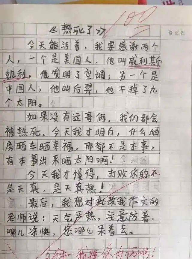 小學生作文《熱死了》火了,腦洞大開有新意,老師:我拜你為師吧