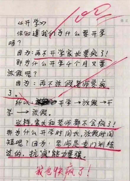有些孩子在寫作文的時候,就會將這種獨特的視角運用到自己的作文中,寫出一些家長看了之后哭笑不得的內容。