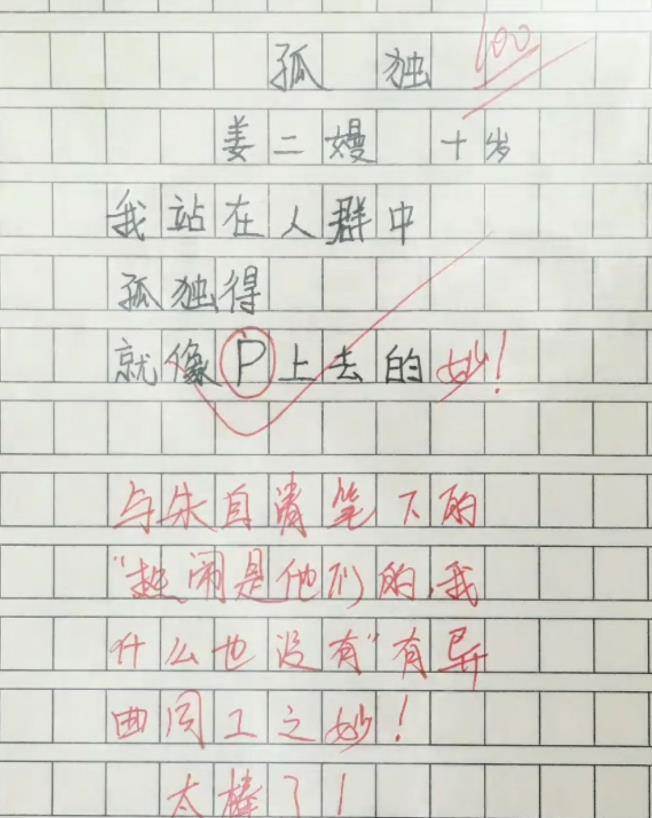 這篇《孤獨》其實算是一首微型詩,寫出這首詩的秦二嫚雖然才十歲,但是已經寫出過很多優秀的作品了,也獲得過很多獎項。