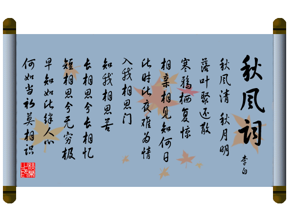 在這首《秋風詞》中,李白以秋夜的氛圍為主線,巧妙地描繪了落葉、寒鴉等秋夜的典型意象,以此傳達出他的相思之情。