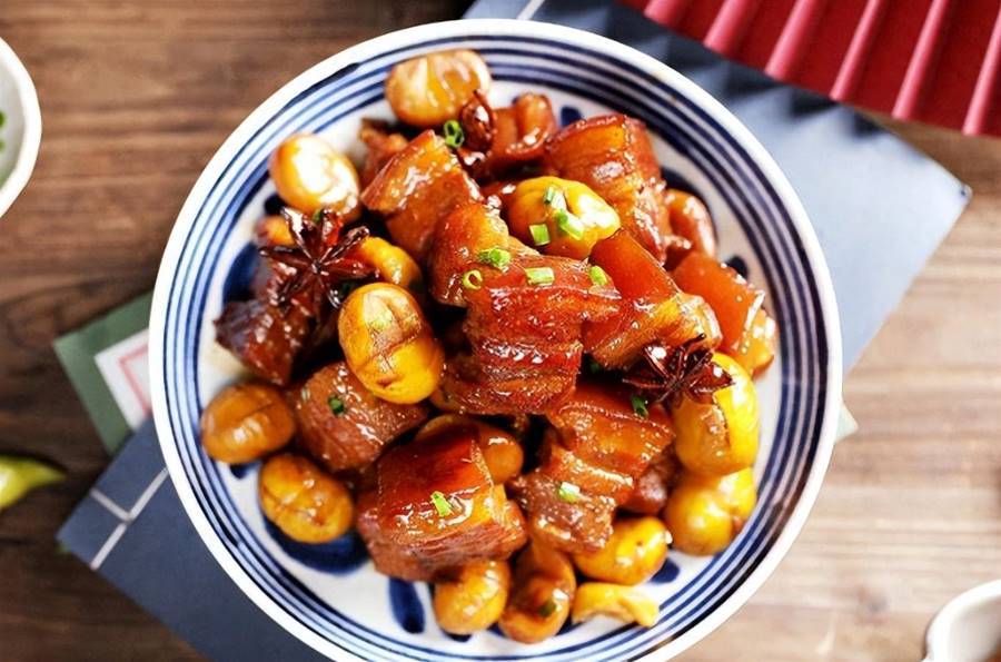 煮開后,放入板栗仁,轉小火燉煮,大約五十分鐘到一個小時,至肉塊變軟爛。
