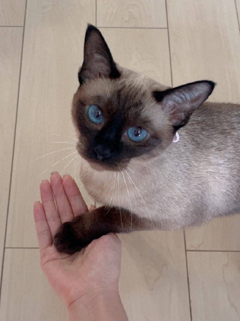 這麼聰明的暹羅貓,小時候可以很好的訓練握手、撿球、趴下等動作,訓練時搭配些零食做獎勵,它會更加配合你。