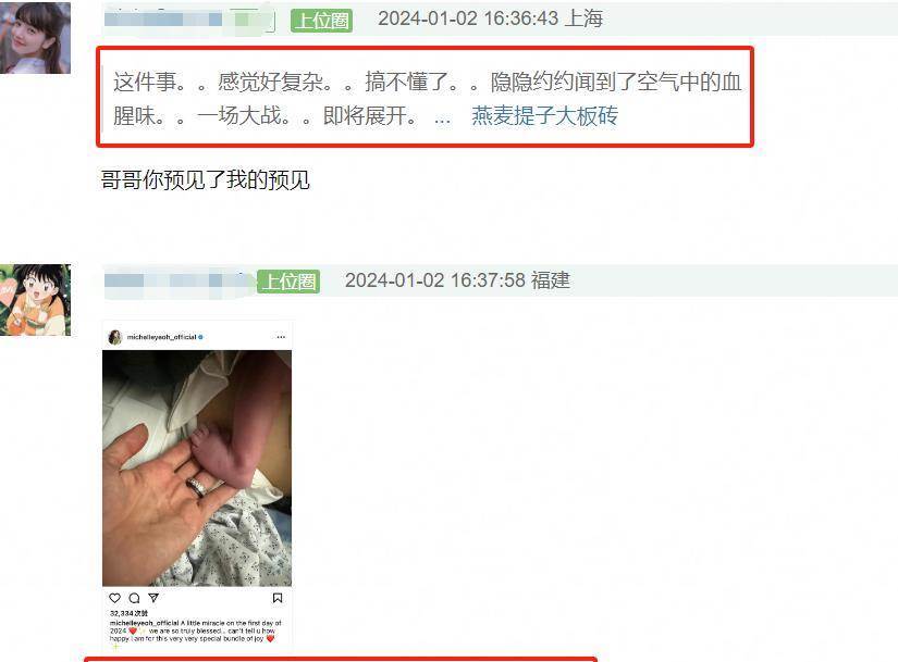 如果楊紫瓊曬的是繼子的孩子,那可真是甄嬛傳2.0了,繼子一看老爸娶了新老婆,立馬搞個孫輩出來增加爭產籌碼,楊紫瓊這邊又第一時間曬嬰兒照,文案配上奇跡兩字——是回擊繼子還是放下身段討好?走向實在難以預料。