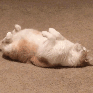 你以为猫咪很笨,其实它聪明着呢,至少是不会亏待自己,当它想要讨好你的时候,就会躺地上对你撒娇,如果你每次看到它这么可爱的模样,就奖励零食,会让它将四脚朝天躺地上和零食联系在一起哦!那它这样做,就是在给你信号“快给我零食吃吧!”