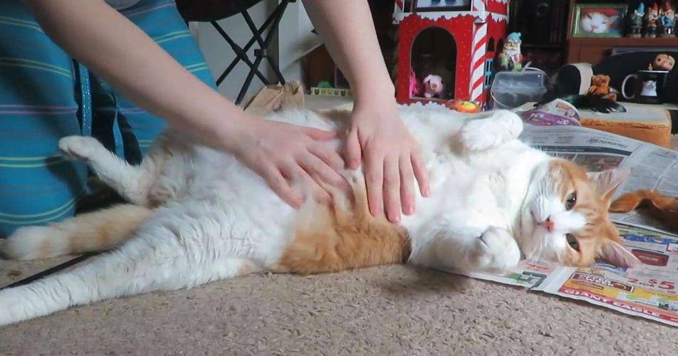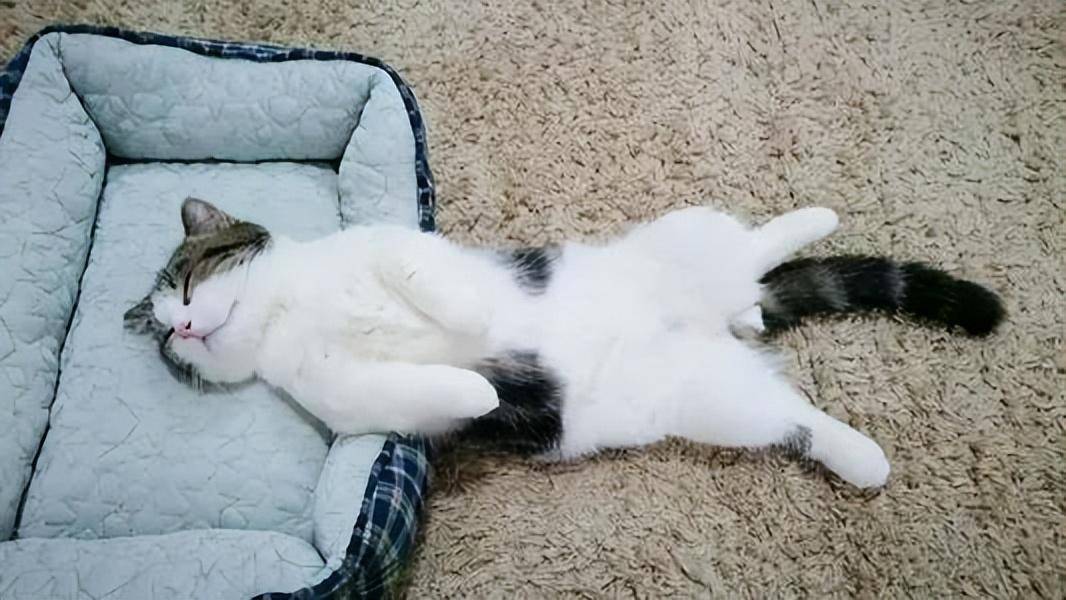 有些猫可能是“饿死鬼”投胎,看到好吃的就一股脑狂炫,结果肚子撑的不行,只有四脚朝天躺着,才能舒服一些,这样的话,主人就要控制猫咪的食量了!