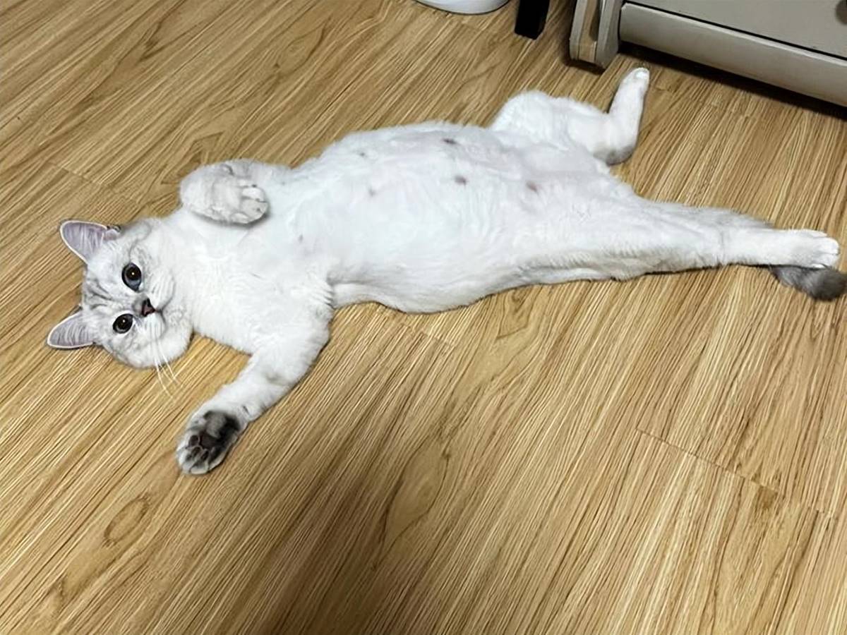 猫咪的肚皮非常脆弱,一般不会轻易对外人袒露,它们警惕性很高的,如果猫咪主动四脚朝天躺地上,就是在给你信号“你是本喵最信任的人啦!”,说明你平时照顾它照顾的不错哦!