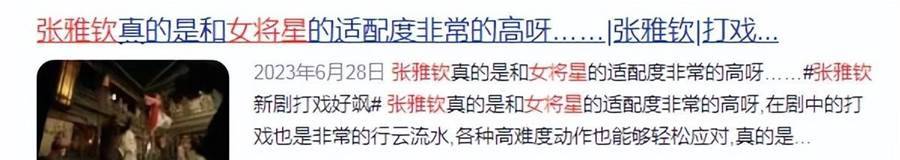 她上一次引起關注,是在2021年周冬雨主演的《千古玦塵》中,張雅欽近乎演活了英姿颯爽、敢愛敢恨的火鳳凰鳳染一角。
