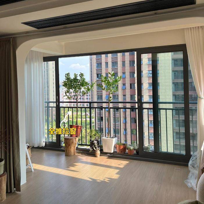 全推拉窗可以說是我目前看過的最為通透、敞亮的一個窗戶型,這種窗型很適合開放式陽台,很多人不想封窗,但又喜歡開放式陽台的敞亮,那麼這種全推拉窗就很適合你!
