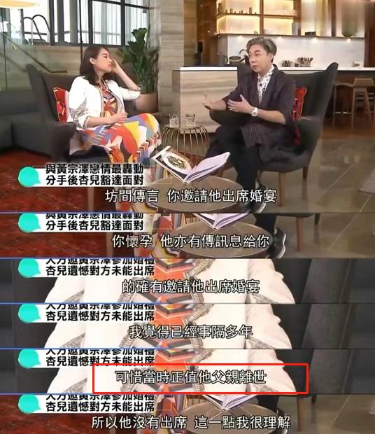 那段時間黃宗澤父親離世,所以他沒有出席婚禮。
