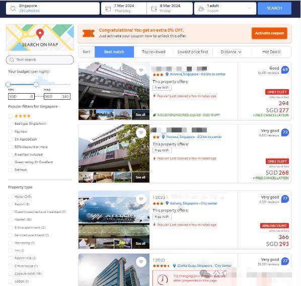 至于演唱会期间的酒店房,基本从200新币起跳。