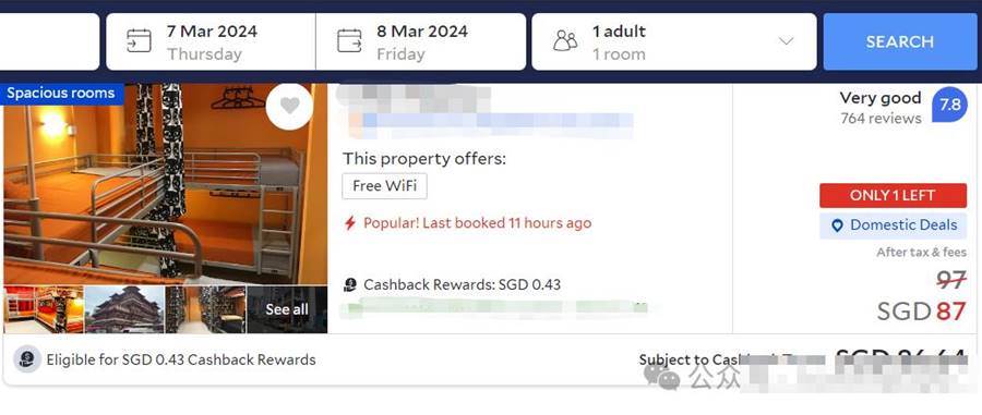 眼哥在订房网站查了一下,在演唱会前的青年旅舍,一个床位35新币就有了;到了演唱会期间,价格直接翻倍!