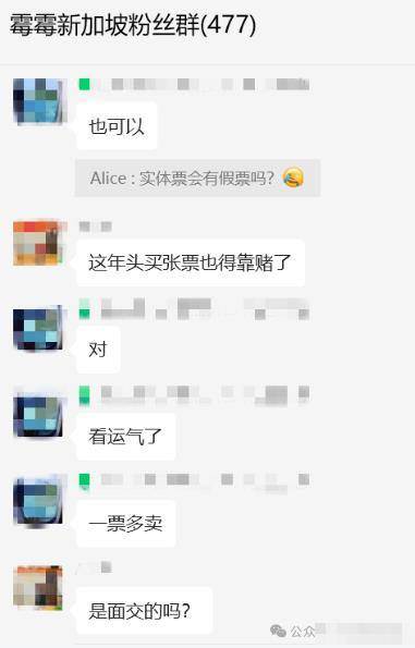 新加坡眼的霉霉新加坡粉丝群天天都有人问谁有票要卖。