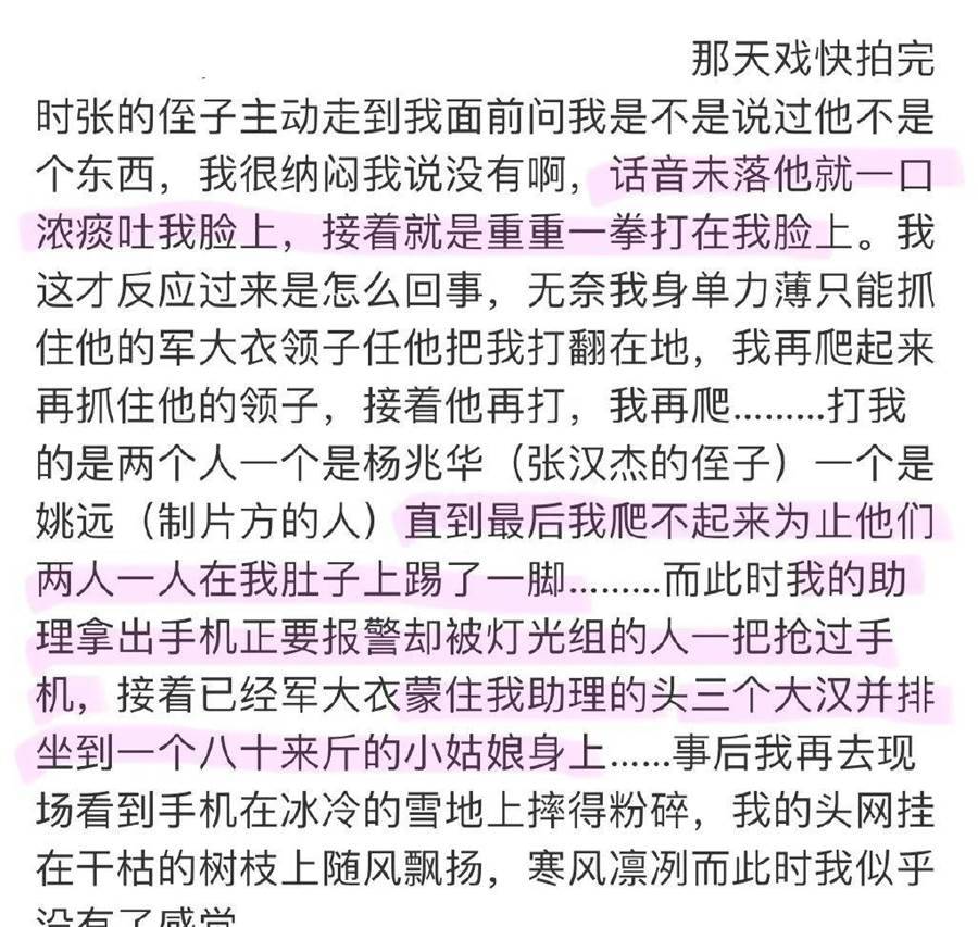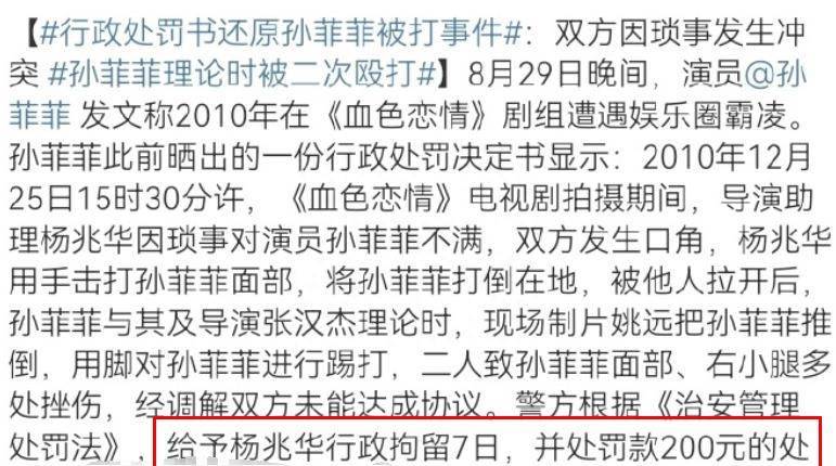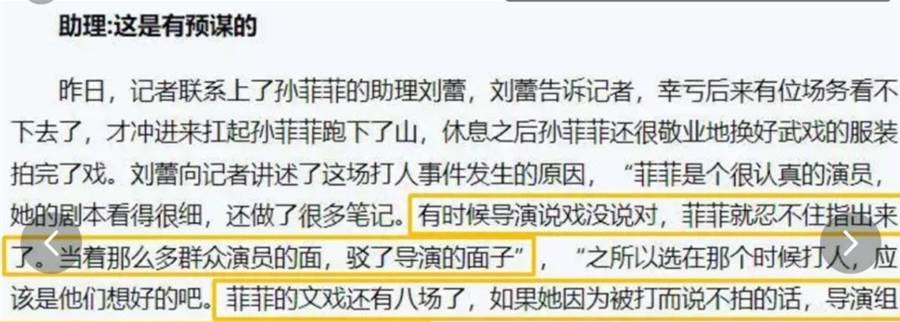 因為有網友發現,其實當年孫菲菲已經曝光過在劇組被毆打的事情。