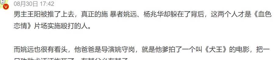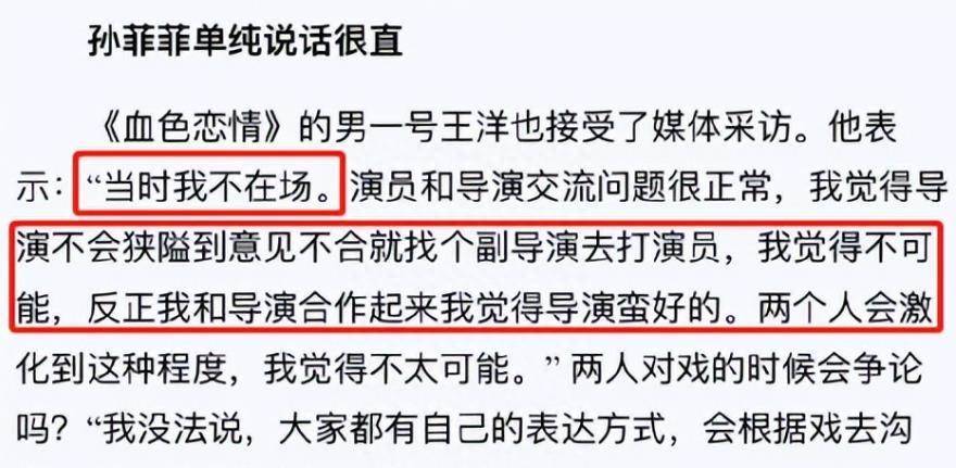 當時王陽作為《血色戀情》的男主角也對這件事進行了回應,但他說的是,他不在現場不清楚這件事,但他不相信導演會因為和演員意見不合就找副導演打演員,并表示導演的人很好。
