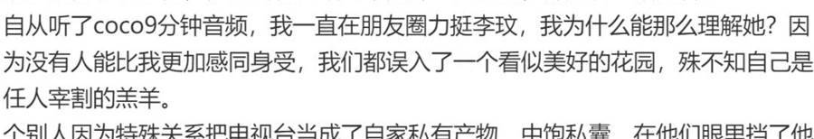 所以她才說自己很理解李玟,并說李玟雖然已經離開了我們,但她做了件大好事,也只有李玟能夠收拾他們,因為活著的人都怕被整,我如果不是已經離開了這個圈子,可能也會沉默,這也說明了就算是明星,在面對這種事也很無奈。
