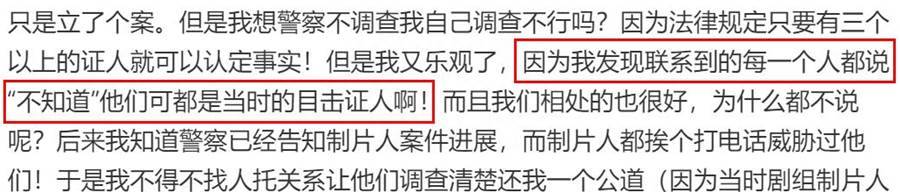 劇組方甚至還自己做了調查,但調查的結果是,他們說劇組內的七八個工作人員都反映沒有出現導演打人的事情。