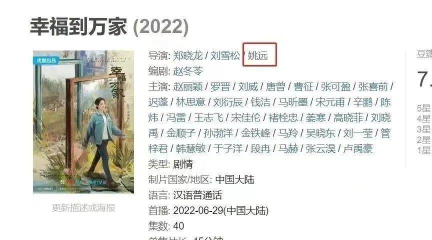 姚遠也還在圈內活躍,還是趙麗穎主演的《幸福到萬家》的導演之一。