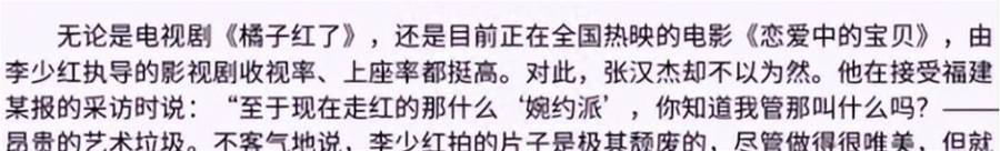 張漢杰的來頭不小,曾經還批判過李少紅的作品是「一堆昂貴的藝術垃圾」。