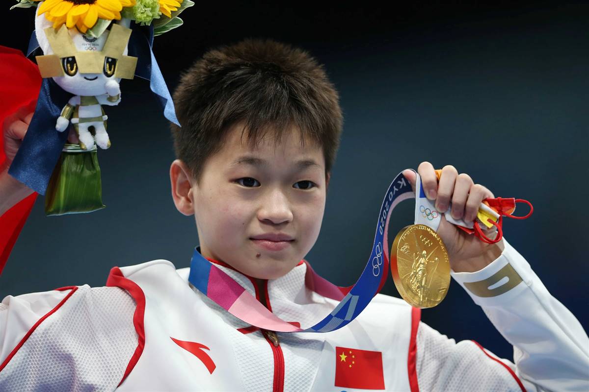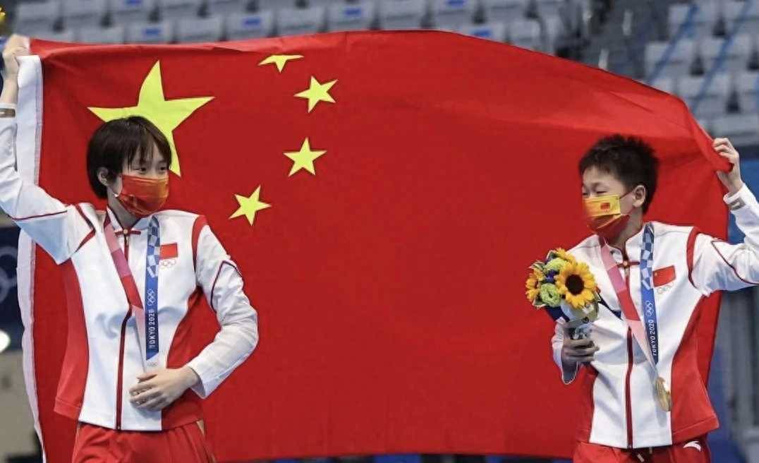 當國旗在東京的炎炎夏日空中飄揚,并伴隨著國歌聲時,全紅嬋激動地流下了眼淚。