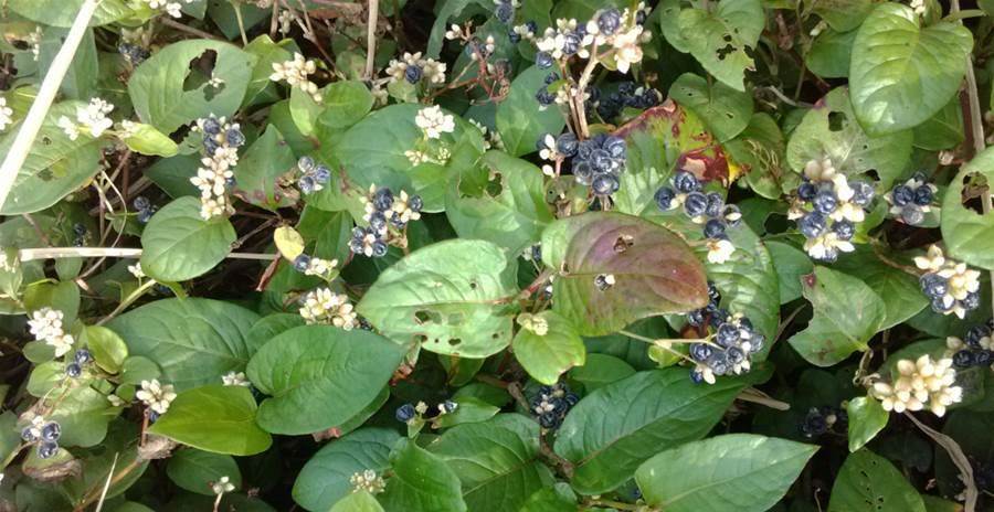 火炭母是一種半攀援狀多年生草本植物,莖枝粗壯,葉子表面有一條明顯的V字形紋路,猶如火焰一般。到了夏天,火炭母的果實變得晶瑩剔透,酸酸甜甜,非常脆爽,是農村娃最喜愛吃的零食之一。