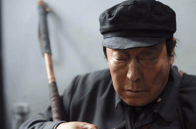 劇中,倪大紅飾演瞎子,黝黃的皮膚透著油膩感,嘴皮因為長期沒有進食而泛著一圈白邊。