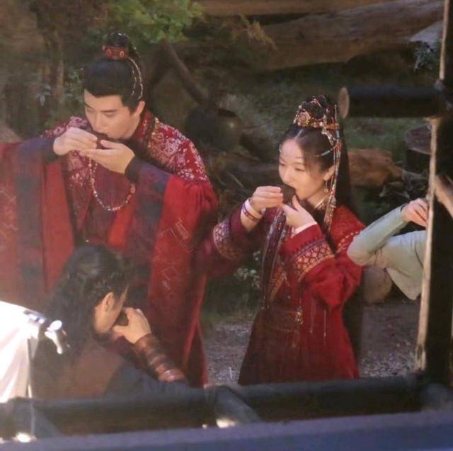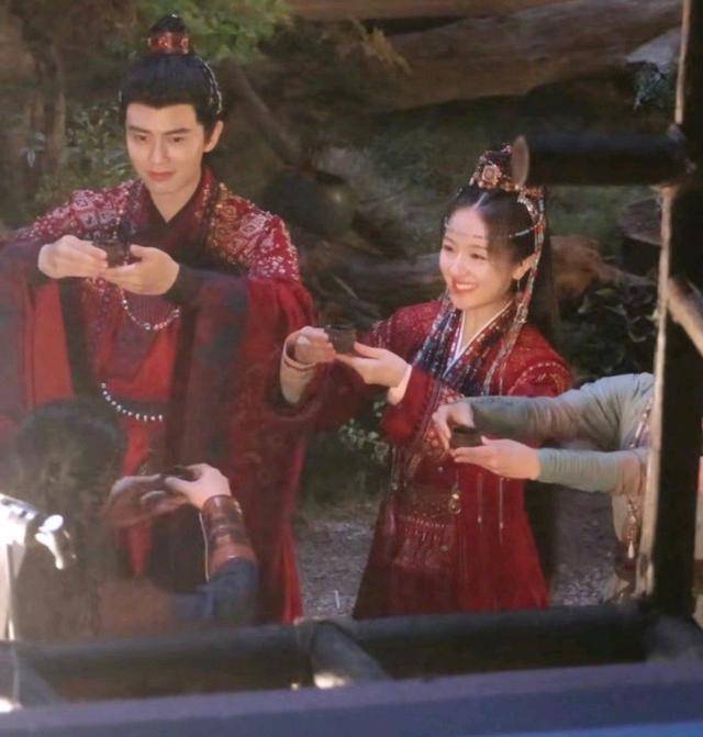 从路透当中可以看得出,这一段情节是男女主要共同饮下交杯酒,喝酒之前要跟好朋友们寒暄一把,对面应该也有几个对手演员,当对手演员看到他们两个人大婚的时候,就举起酒杯说祝福,两个人也是特别愉快接受了好友的祝福,随后端起酒杯一饮而下。