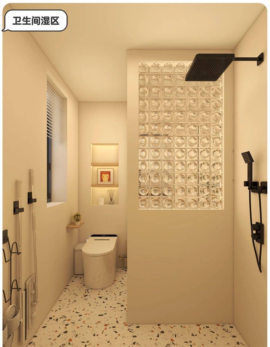 ◽濕區做半墻+玻璃磚墻