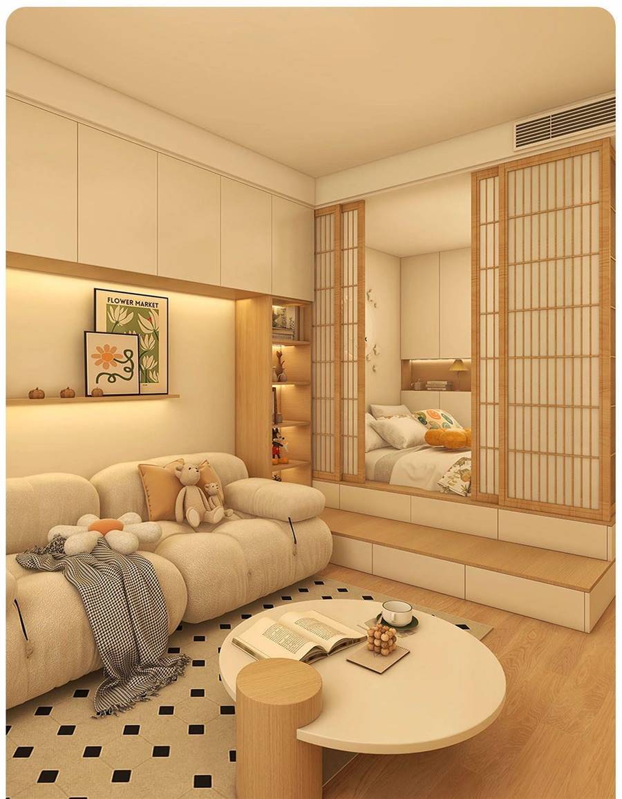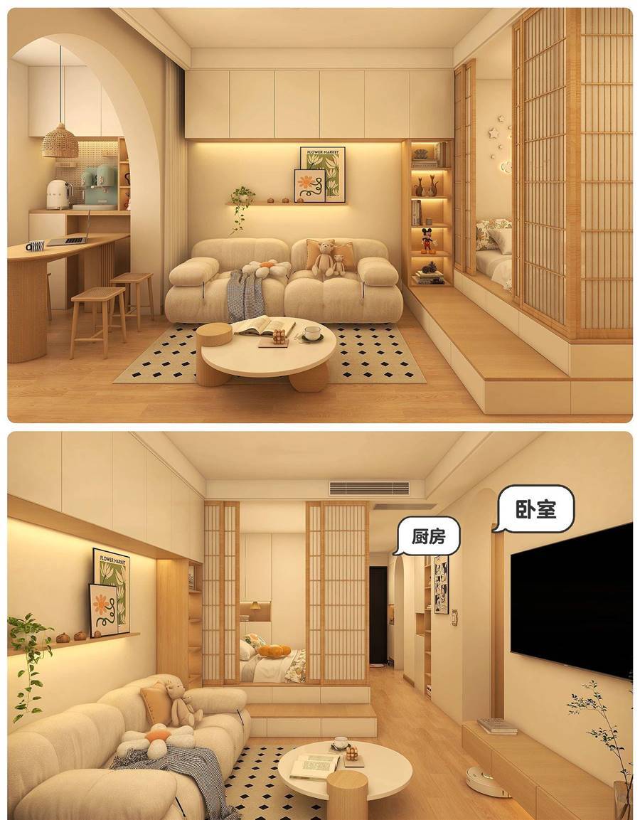 ◽客廳的臥室做雙層地台+?屏風移門