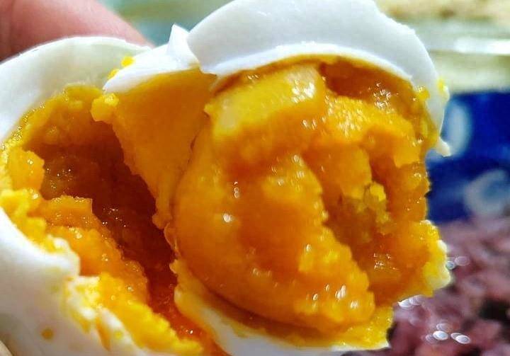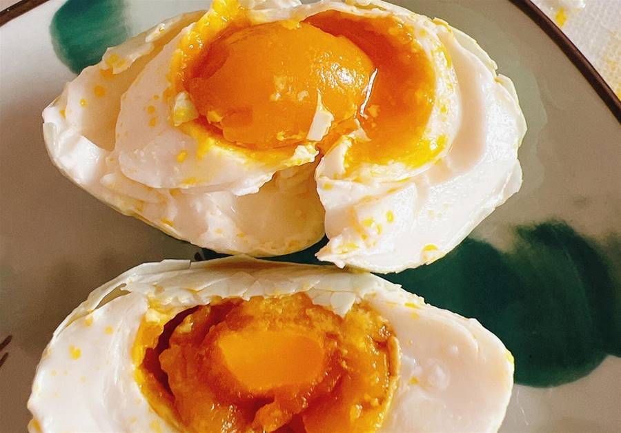 5、一定要等到20天以后,吃早了有亞硝酸鹽,下鍋煮一煮就能吃了,煮出來的鴨蛋蛋清有一點點咸味,蛋黃有沙流油,,口感獨特,非常好吃。