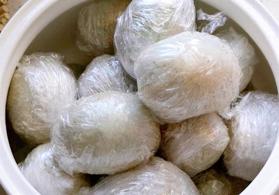 5、最后將裹好好的鴨蛋,用干凈的保鮮膜封裝起來,纏繞3層就可以,放在陰涼通風處保存,腌制起來。