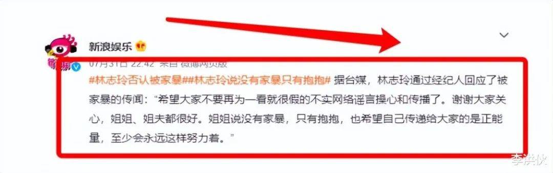 许多人都表示了对女神的同情和惋惜,而8月1日,林志玲亲自出来辟谣了,志玲姐姐通过经纪人回应了被家暴的传闻:“希望大家不要再为一看就很假的不实网络谣言操心和传播了。姐姐、姐夫都很好,姐姐说没有家暴,只有抱抱......”
