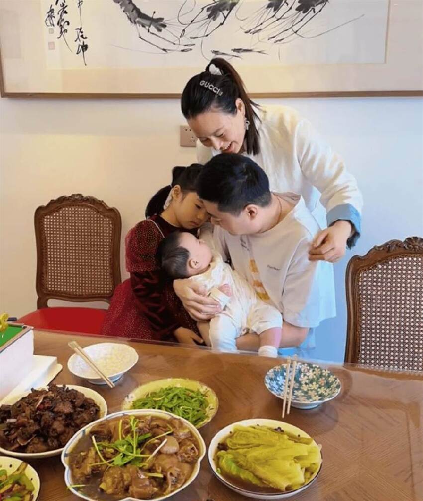 沒有盛大的宴會,沒有耀眼的明星陣容,只有一家四口圍坐在一起,享受著簡單而溫馨的家庭聚餐。